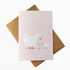 De lieve illustratie van een trotse eend met haar kuikentje, omlijst door zachte hartjes, maakt dit kaartje perfect om kersverse ouders te feliciteren.